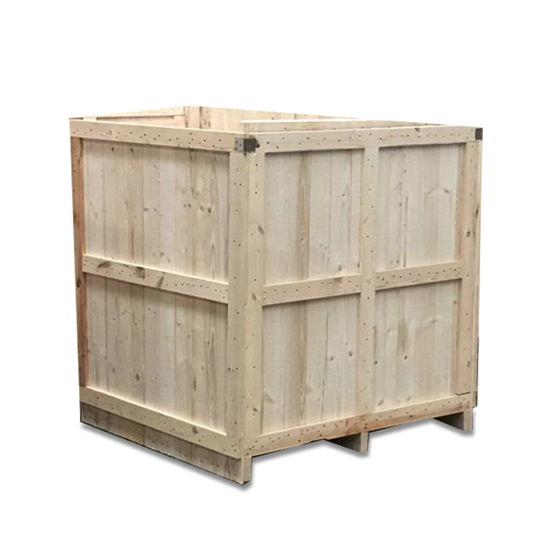 圍板箱:由托盤(pán)、箱體、箱蓋,通過(guò)疊裝方式并由一段以上的圍板組成的木箱。